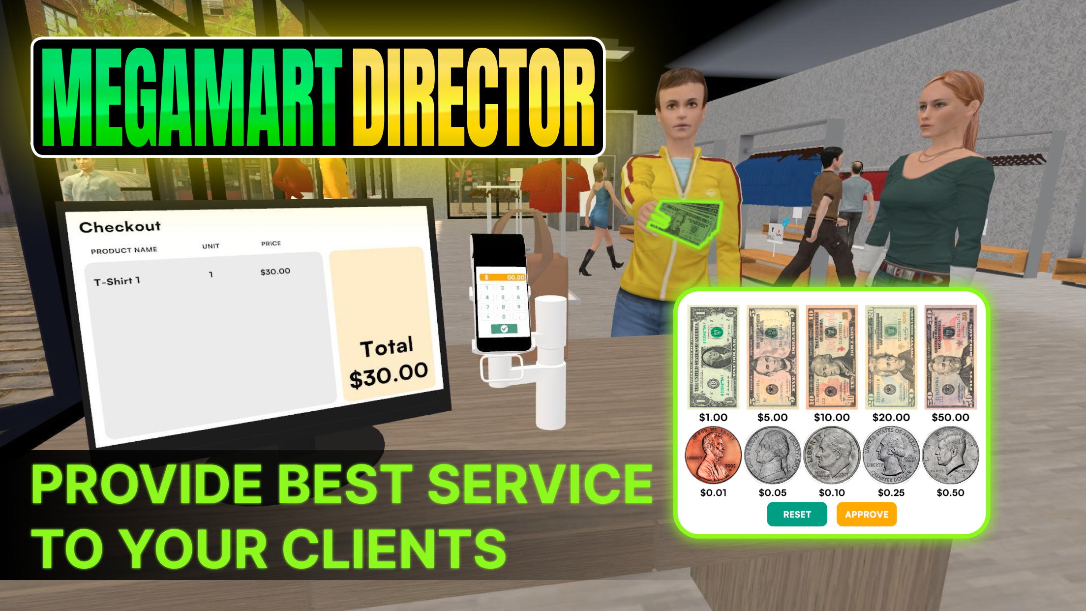 Welcome to MEGAMART DIRECTOR SIMULATOR - your very own stylish adventure in retail! Step into the role of a store owner, where your goal is to create the ultimate shopping experience. Stock up on trendy outfits, manage your displays, and bring your vision to life with unique store layouts. Help customers find the perfect look, ring up sales at the register, and keep your shop running smoothly. As your store grows, you'll unlock more options and new challenges, making every day a fresh experience. Dive in and see if you have what it takes to run the most popular clothing store in town!